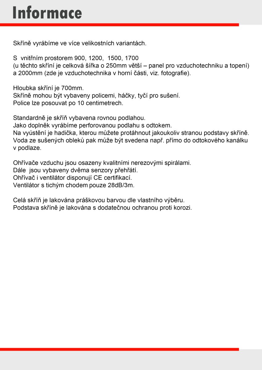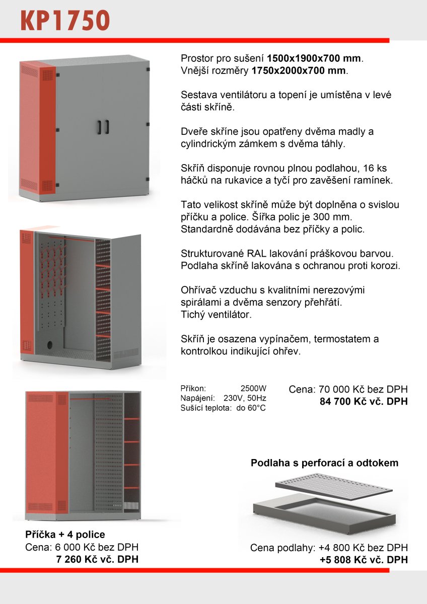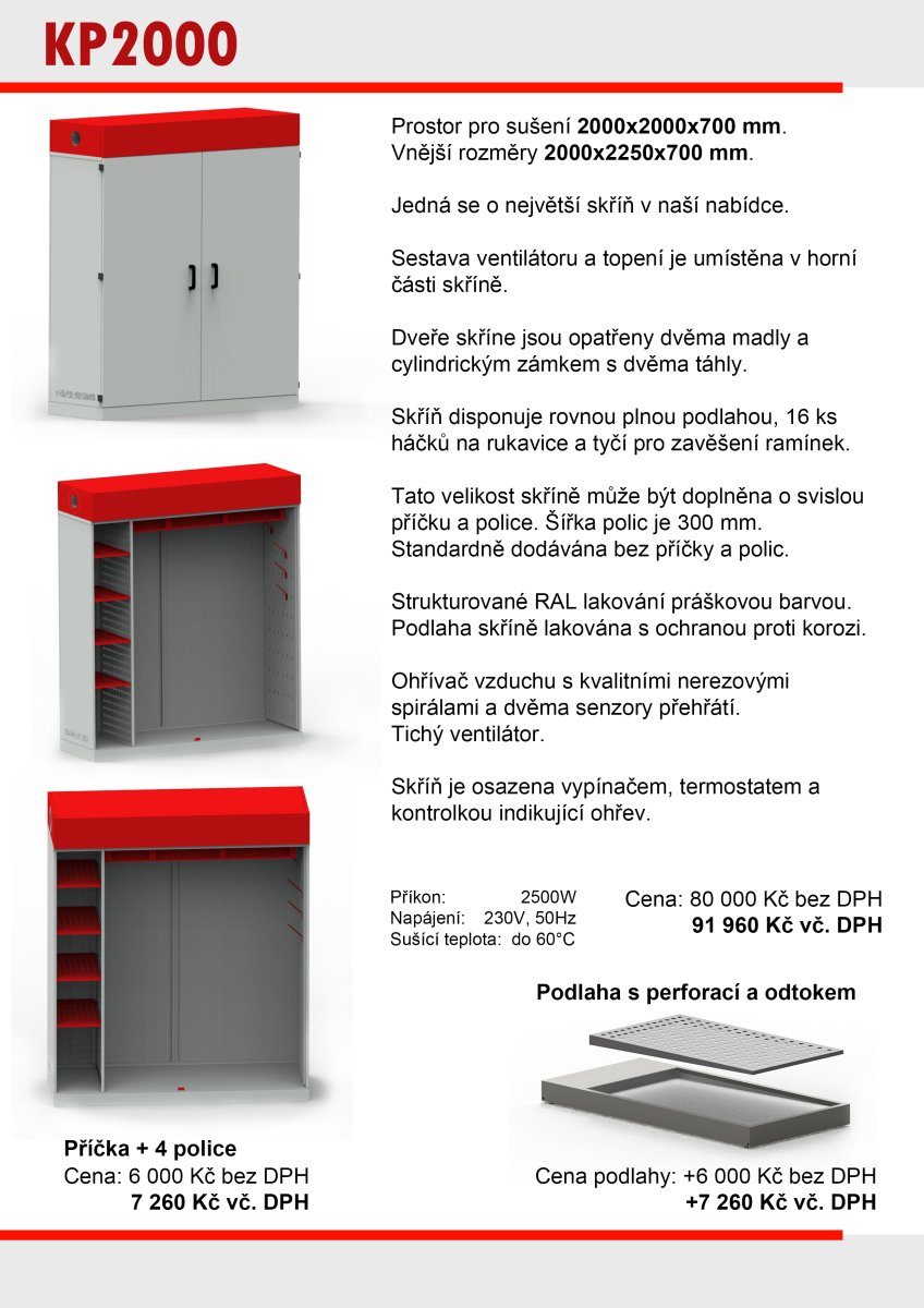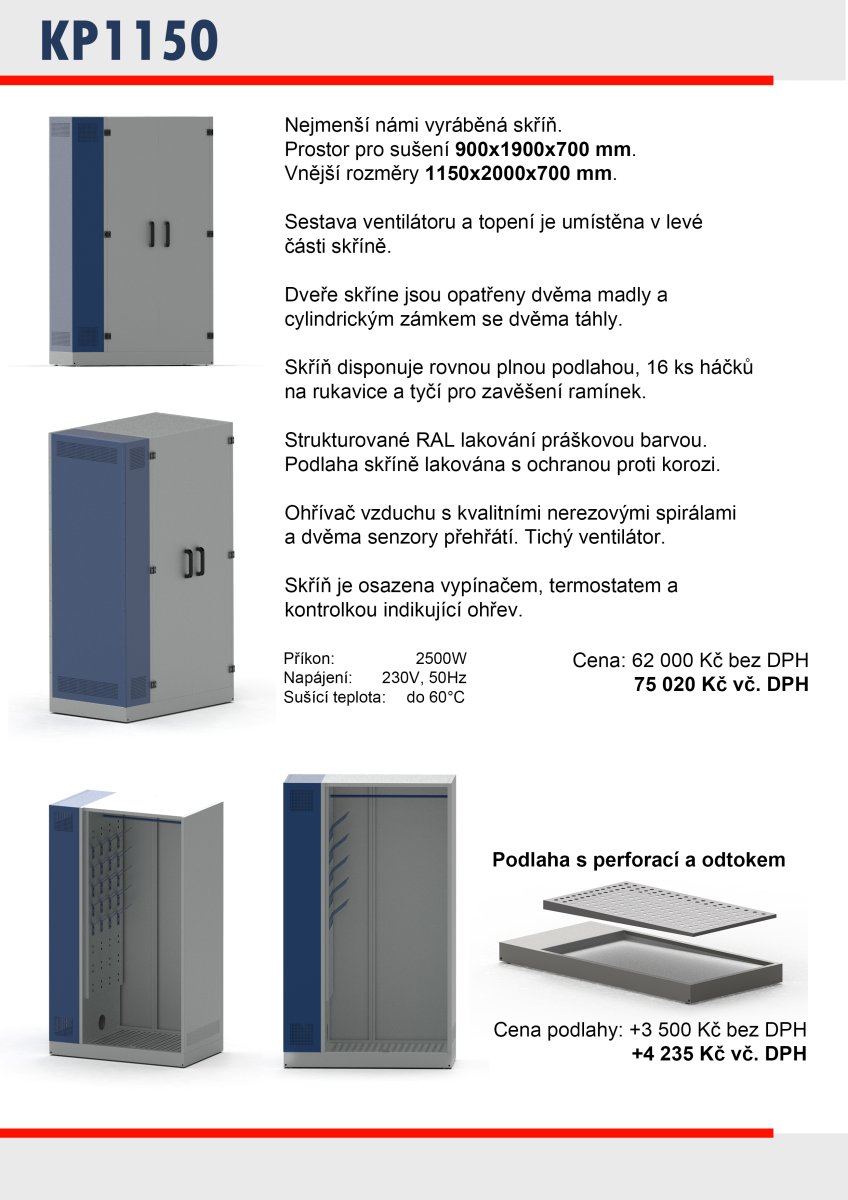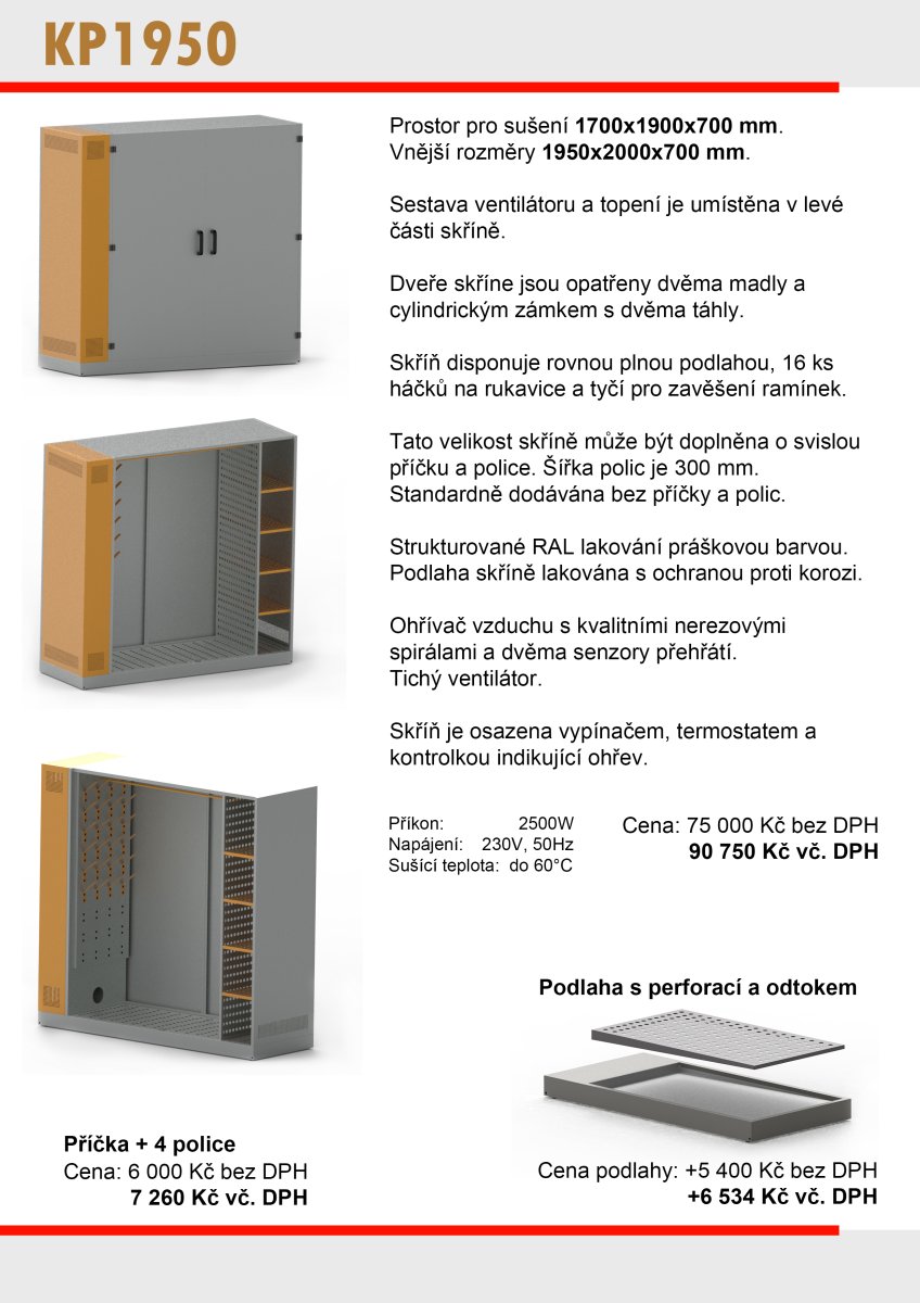 Výkon a bezpečnost: Skříně jsou osazeny ohřívači vzduchu s kvalitními nerezovými spirálami a dvěma senzory přehřátí, které zajišťují bezpečný a efektivní provoz. Příkon činí 2500W s napájením 230V. Maximální sušicí teplota je nastavena do 60°C.