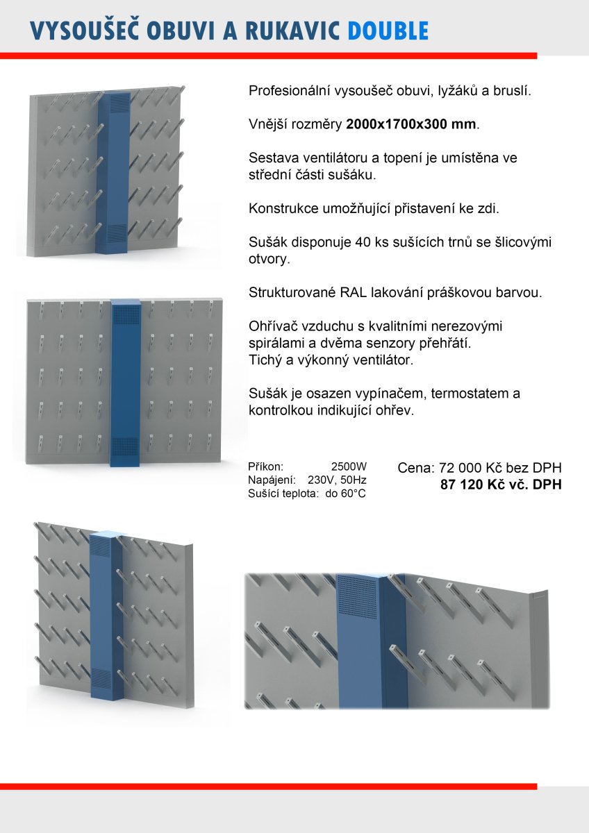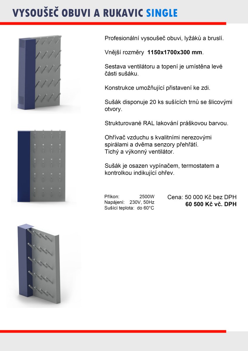 Tyto skříně jsou navrženy s důrazem na rychlé a šetrné vysoušení pracovního, záchranářského a hasičského vybavení – od těžkých zásahových obleků a bot až po rukavice a drobné doplňky.